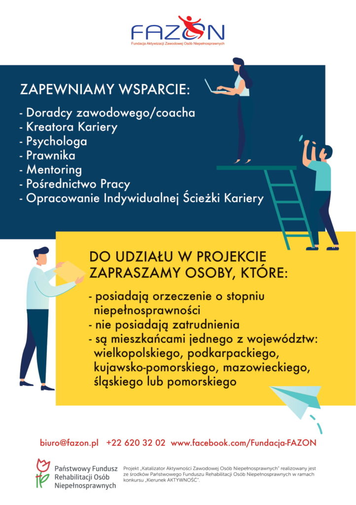 Projekt Fundacji FAZON – Katalizator Twojej Kariery – skierowany do osób niepełnosprawnych