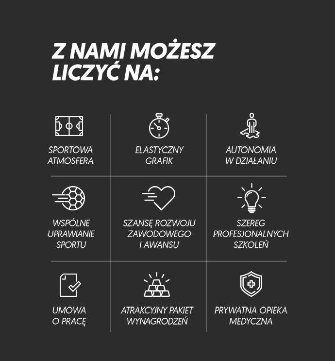 – wyjątkową, sportową atmosferę pracy.